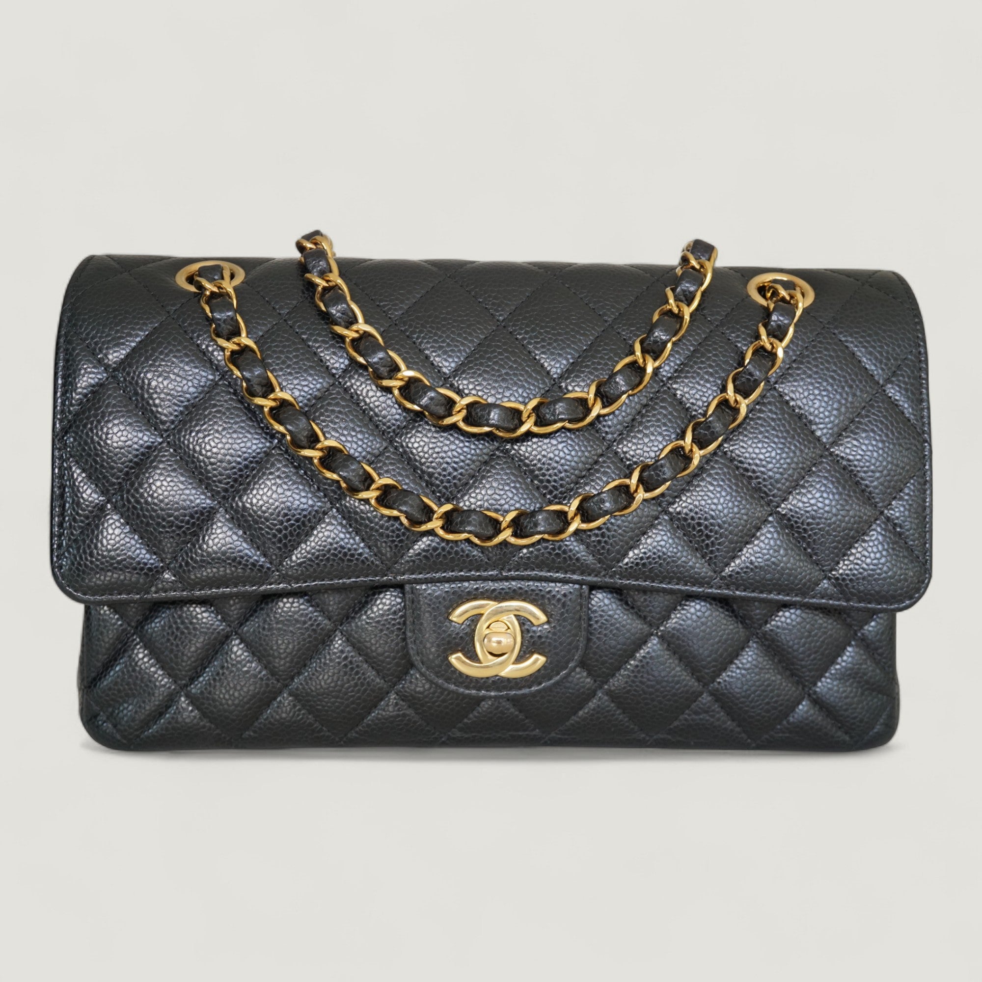 Chic, iconic and timeless. The House of Chanel, founded by Coco Chanel and followed up by Karl Lagerfeld, has grown into one of the world’s finest fashion labels. Their iconic and elegant pieces fill the wardrobes of many fashion lovers. From the Classic Double Flap handbag to the gold-plated clip-on earrings. Have a look at our collection of pre-owned and vintage Chanel pieces.