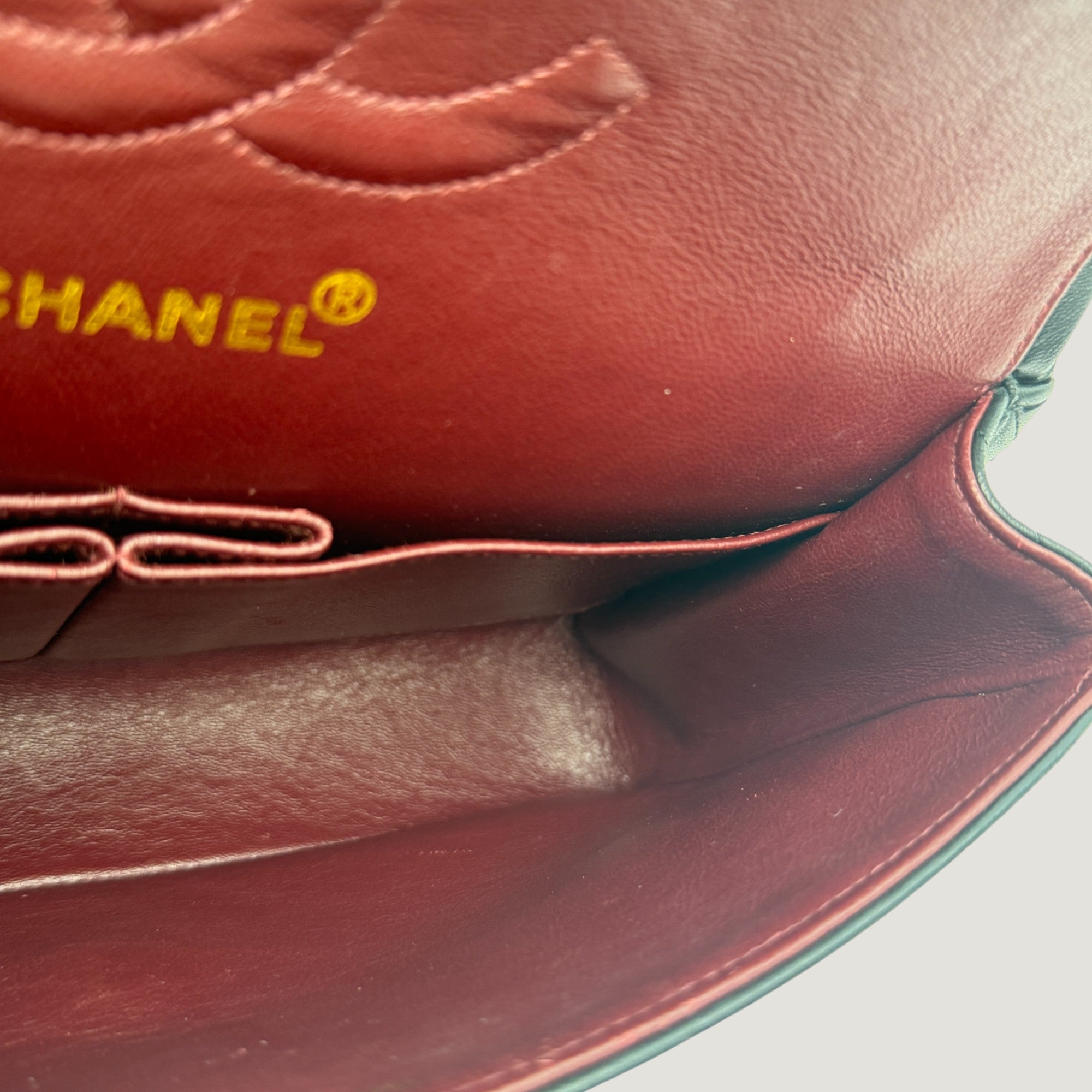 - Burgundy lambskin lining