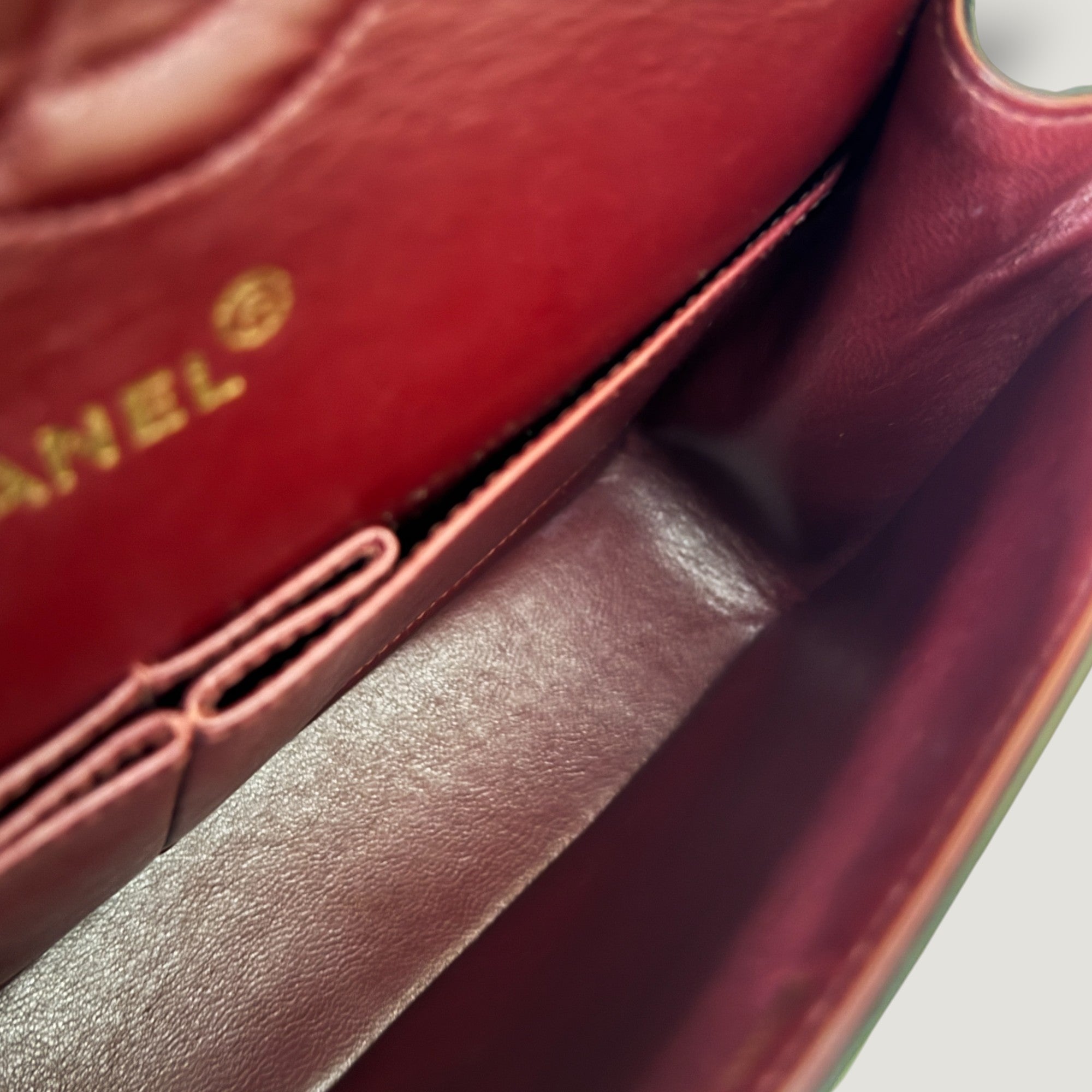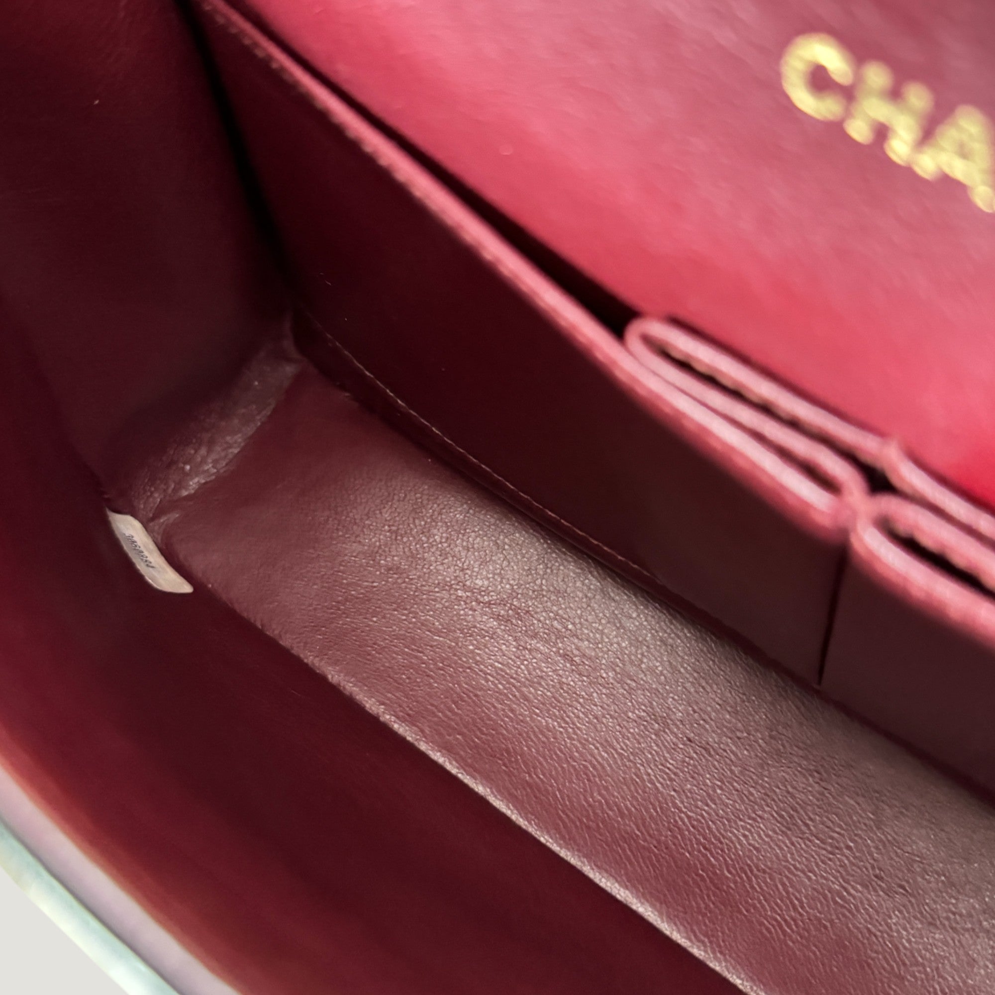- Burgundy lambskin lining