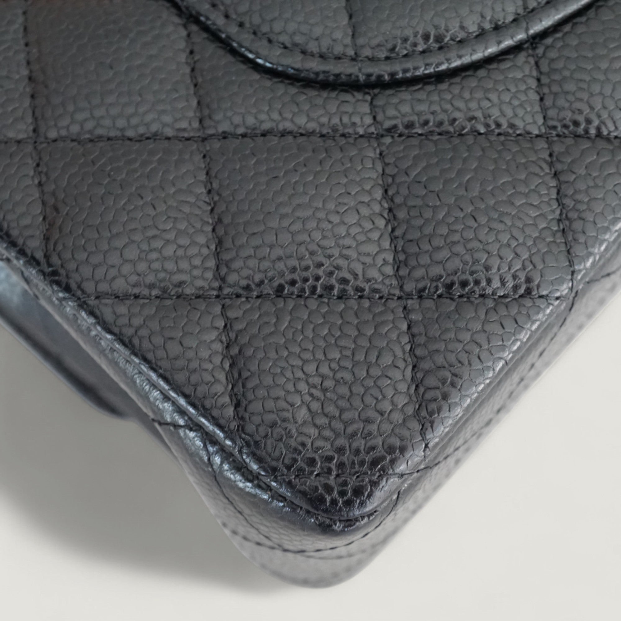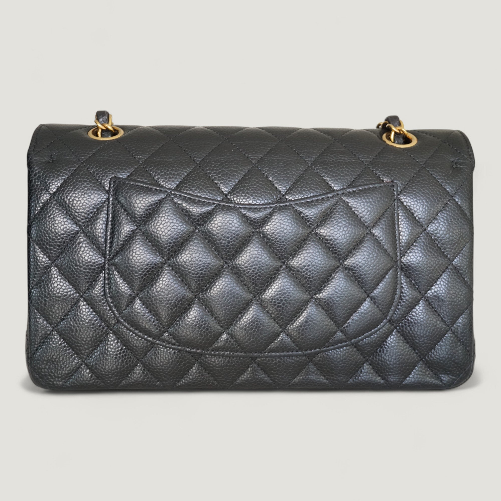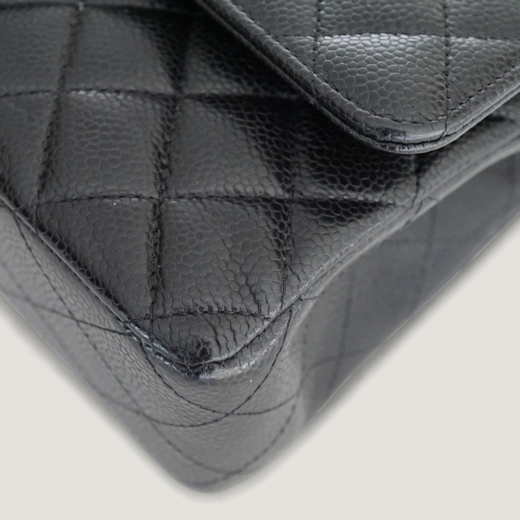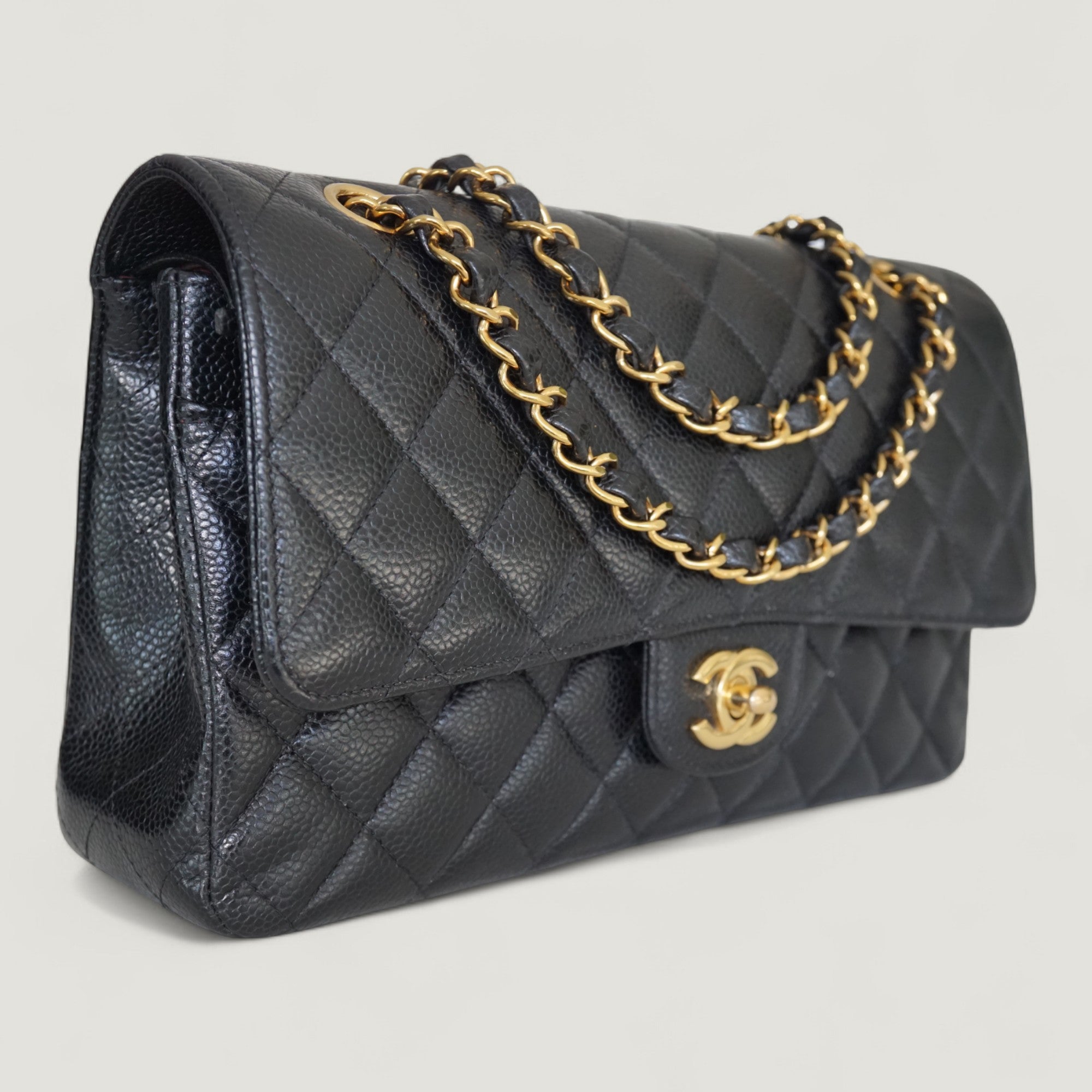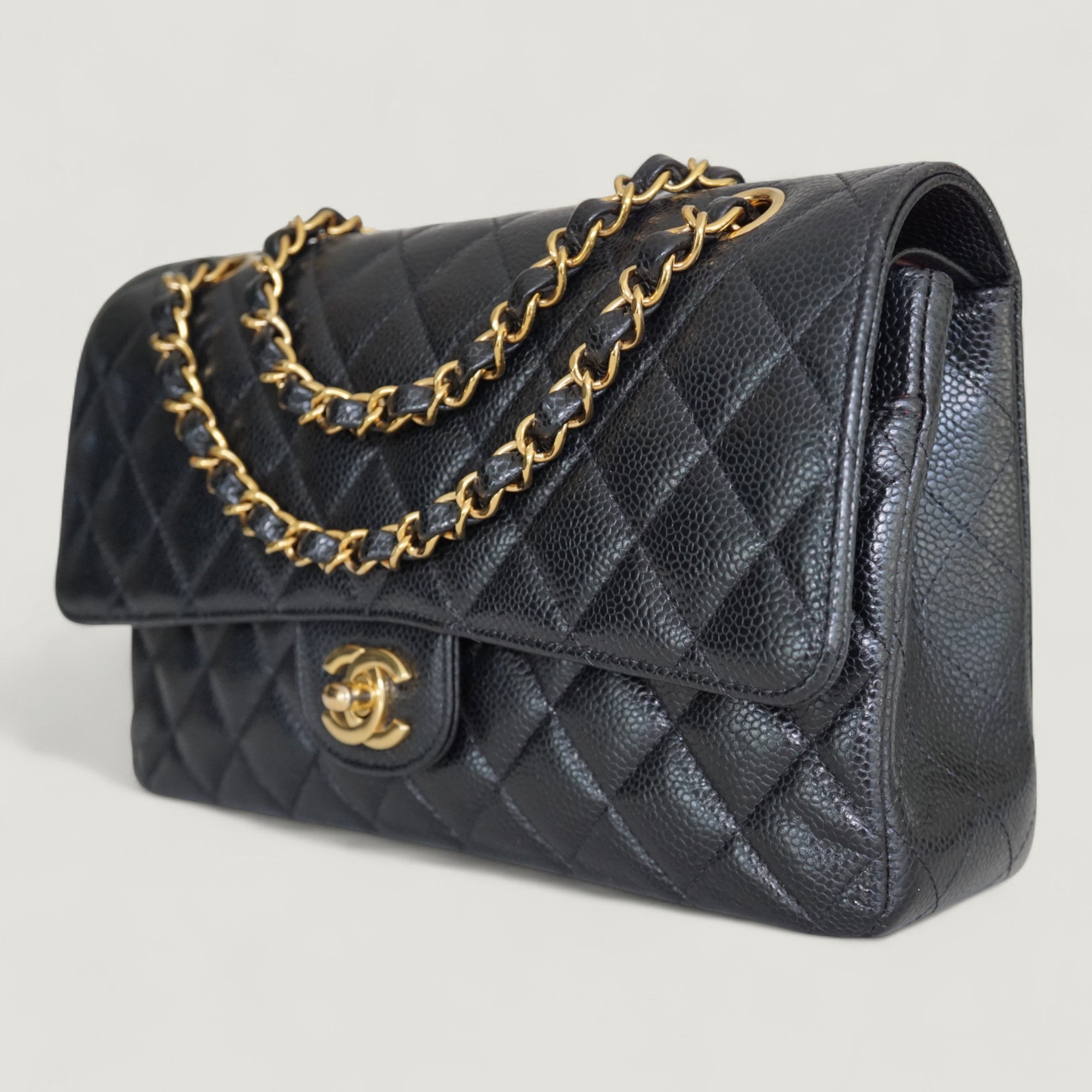 - Materials: caviar leather, gold-tone hardware