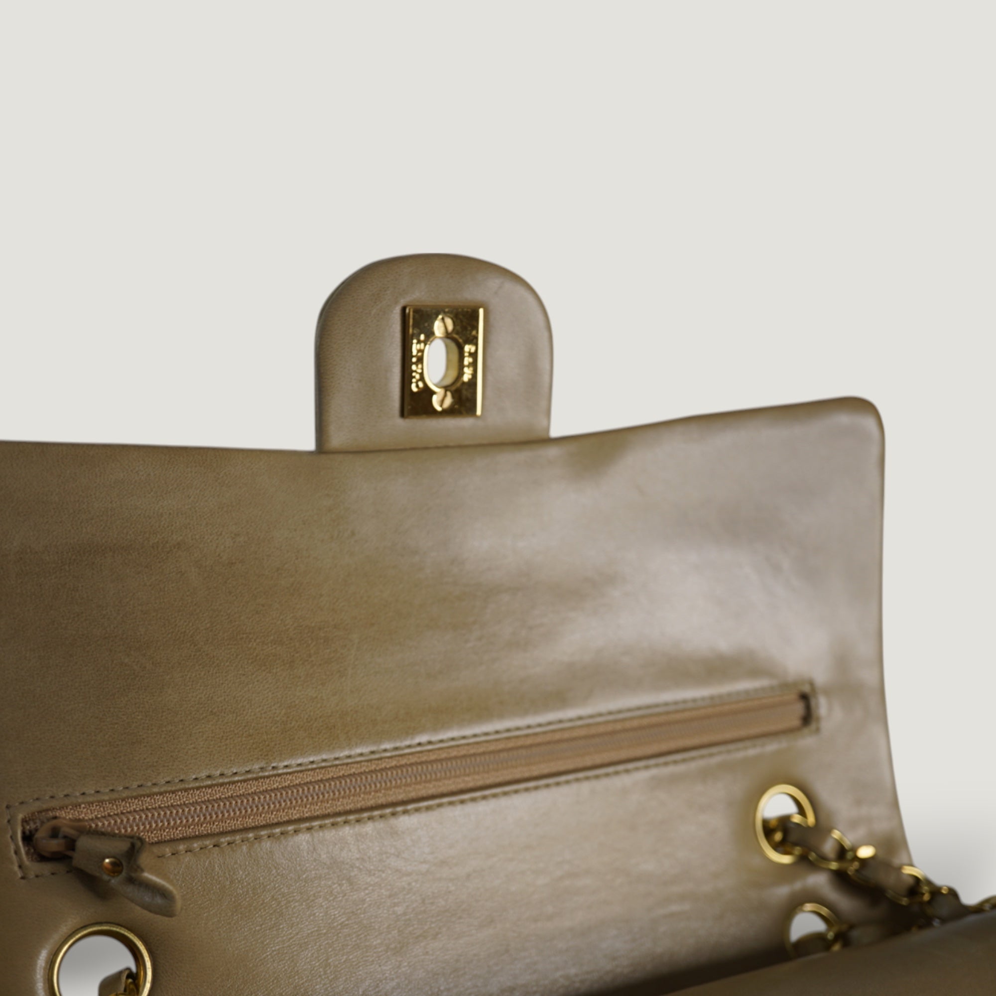 Did you know that Coco Chanel is rumored to have used the Classic Flap Bag to store her secret love letters? It is said that she used the inner zipped pocket on the biggest flap to store these letters. Additionally, the burgundy color was inspired by the uniforms worn at the orphanage that Coco Chanel once attended.