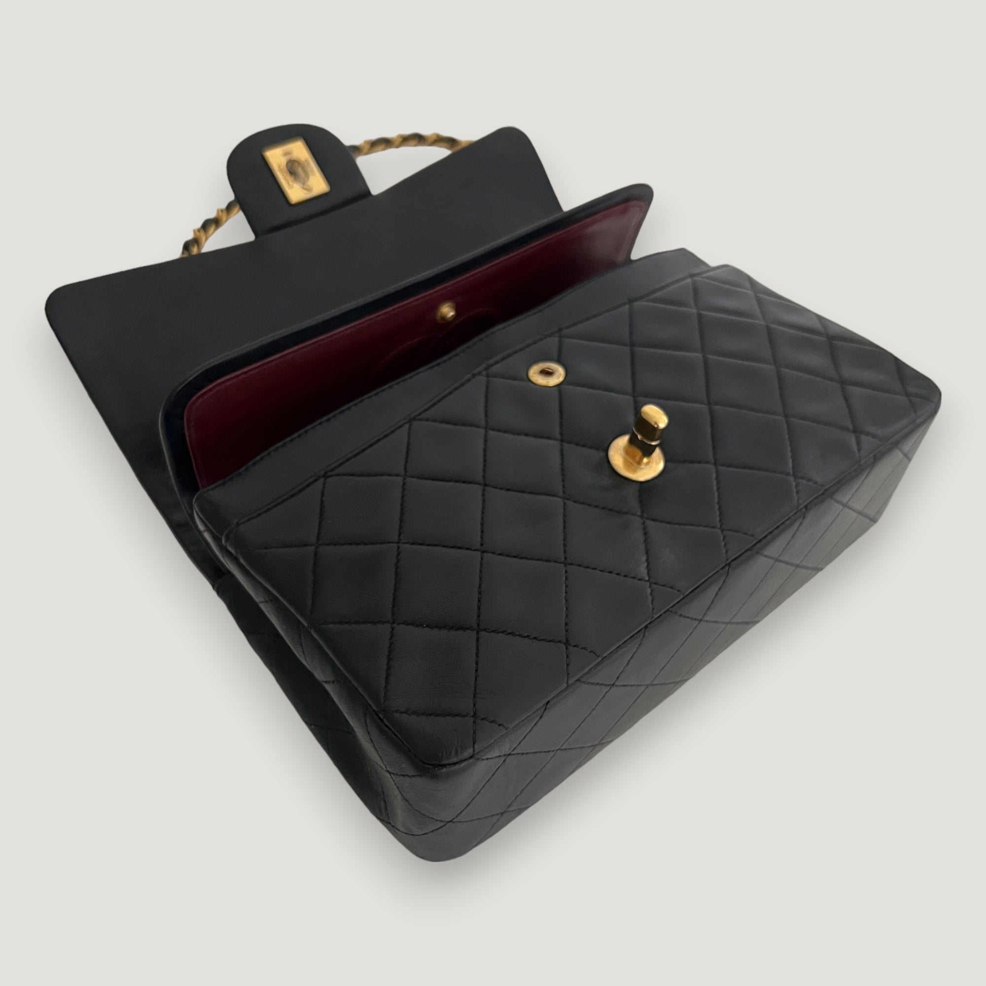 Did you know the rumor goes that Coco Chanel used the classic flap bag to store her secret love letters? It is said that she used the inner zipped pocket on the biggest flap (to close the bag) for storing these. The burgundy color was inspired by the uniforms they wore at the orphanage that Coco Chanel went to.