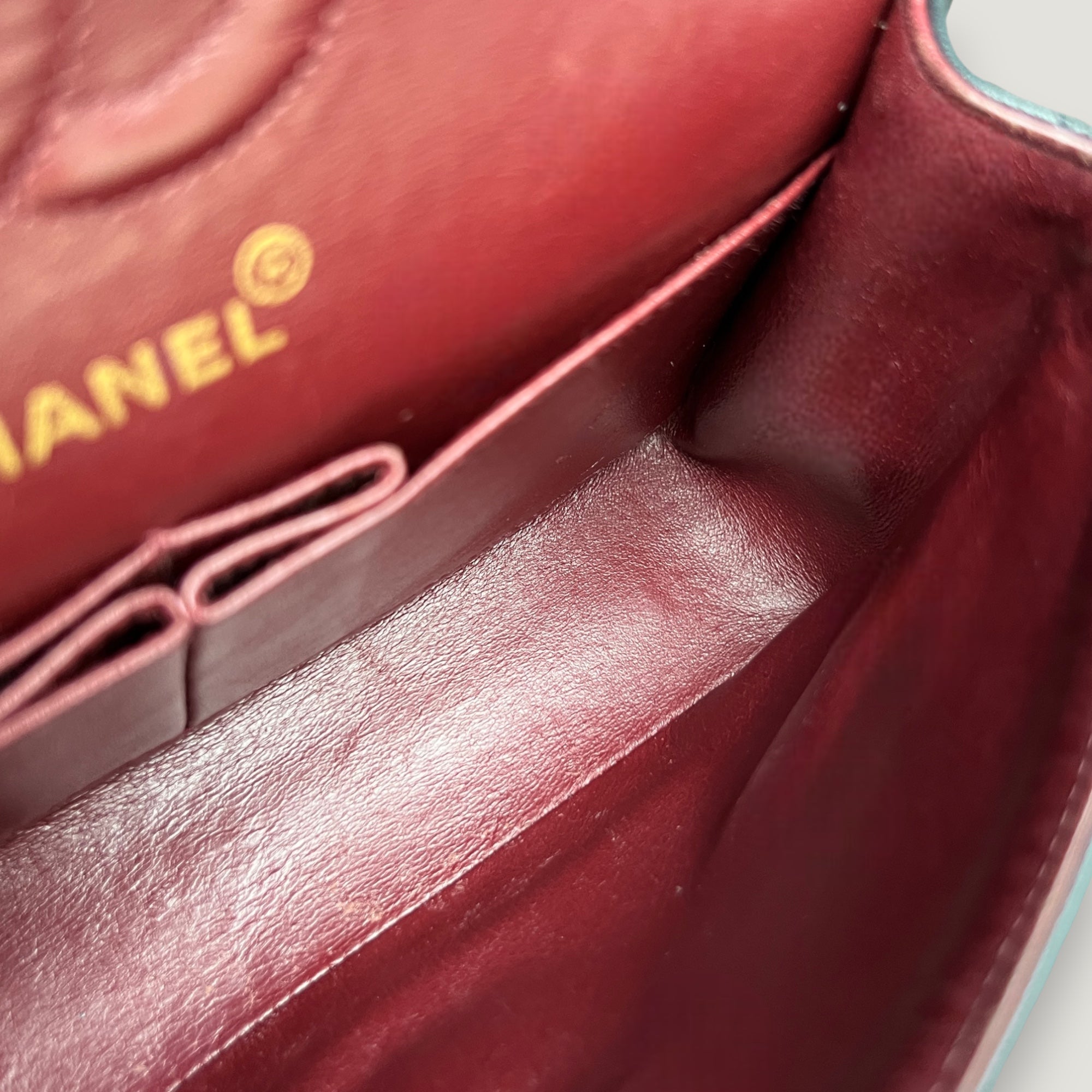 - Burgundy lambskin lining