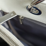 - Materials: caviar leather, silver-tone hardware